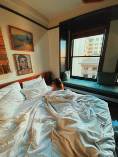 On a passé une nuit à cet hôtel, que j’ai réservé via Airbnb. C’était super, j’ai beaucoup aimé l’ambiance de la chambre. On avait pris une chambre spéciale avec une banquette en bord de fenêtre et c’était magique de pouvoir se poser et admirer le coucher de soleil.